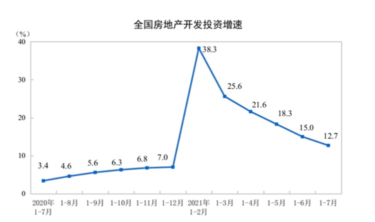 前7个月房地产开发投资增长12.7%,增速连续5个月收窄