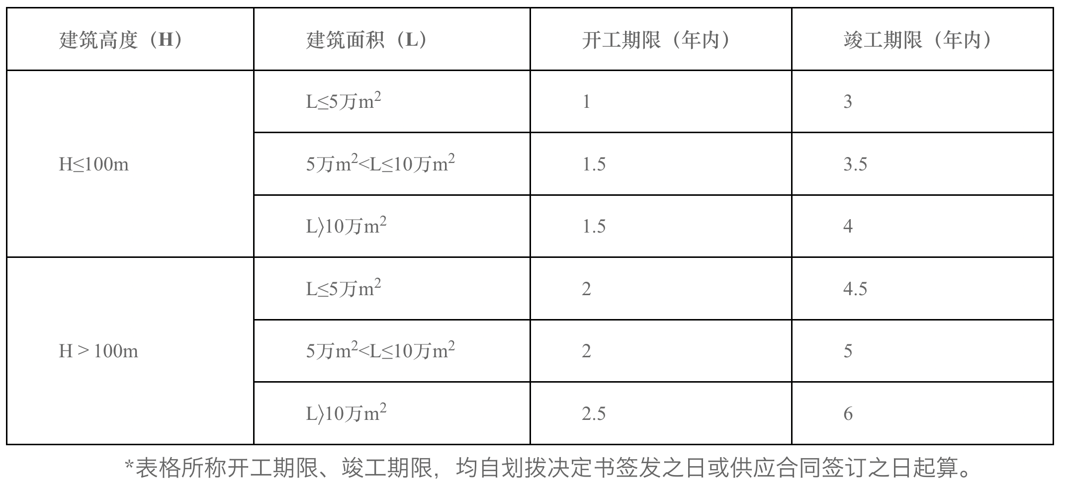 12月11日,深圳市规划和自然资源局印发《深圳市建设用地开工竣工管理办法》,为提高政策实施的有效性,根据相关法律、法规和政策规定,结合我市实际,通过对竣工定义、开竣工期限、违约金计收等内容进行修改完善,进一步规范建设用地开竣工管理。 《办法》适用于已取得国有建设用地使用权划拨决定书或已签订国有建设用地使用权出让合同、租赁合同、作价出资(入股)合同(以下简称供应合同)的建设用地开工、竣工管理。《办法》自2023年12月12日起施行,有效期5年。 住房类建设项目应在4年内竣工 《办法》根据项目用地性质、建筑高度和建筑规模的不同,对建设用地的开工、竣工期限作出规定。(一)主体功能为住房类建设项目应在划拨决定书签发之日或供应合同签订之日起1年内开工建设,自划拨决定书签发之日或供应合同签订之日起4年内竣工。(二)主体功能为非住房类建设项目的开工、竣工期限按下表规则确定。其中,建设项目地下室≥3层的,其开工日期可再延长6个月,竣工期限相应顺延。