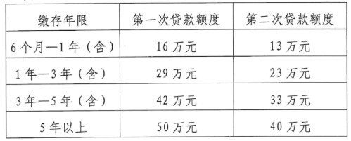 单方缴存的,贷款额度A与贷款额度B两者中的最大值为单方缴存的最高贷款额度,但第一次贷款每户最高贷款额度不超过50万元,第二次贷款每户最高贷款额度不超过40万元。 双方缴存的,按单方缴存计算的贷款额度相加,相加之和为双方缴存的最高贷款额度,但第一次贷款每户最高贷款额度不超过80万元,第二次贷款每户最高贷款额度不超过70万元。 |